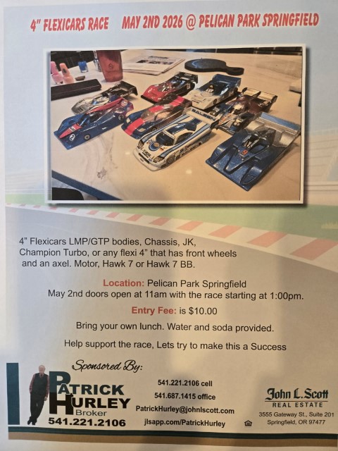 Slotcar Ranch Flexi Race in Salem! Tuesday April 14, 2026